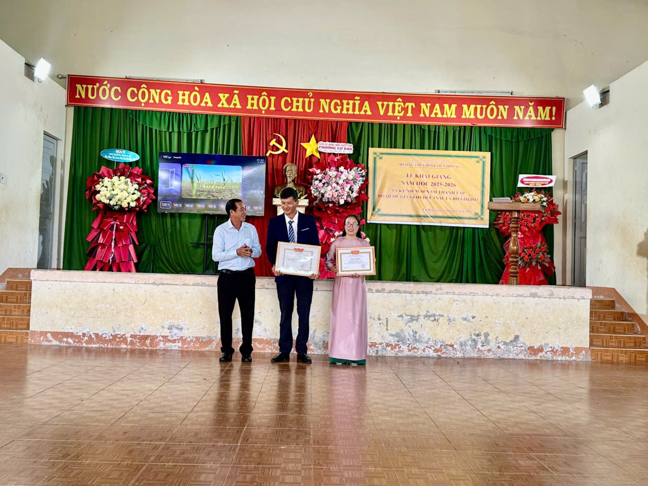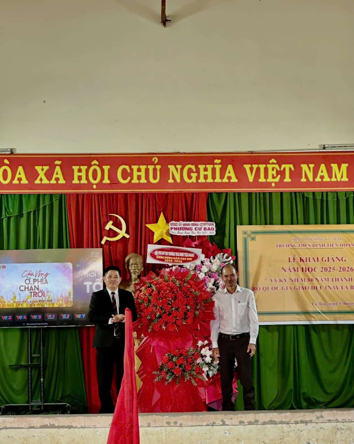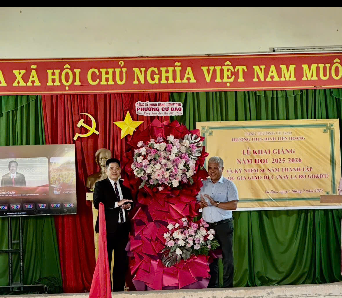 Sáng ngày 5/9/2025, cùng với không khí hân hoan của ngày hội toàn dân đưa trẻ đến trường và đặc biệt hơn là kỉ niệm 80 năm(5/9/1945- 5/9/2025) ngày thành lập bộ GD và ĐT, trường THCS Đinh Tiên Hoàng long trọng tổ chức lễ khai giảng năm học mới 2025-2026. Về dự lễ khai giảng với sự có mặt của quý vị đại biểu, quý thầy cô giáo va hơn 400 học sinh của trường THCS Đinh Tiên Hoàng.